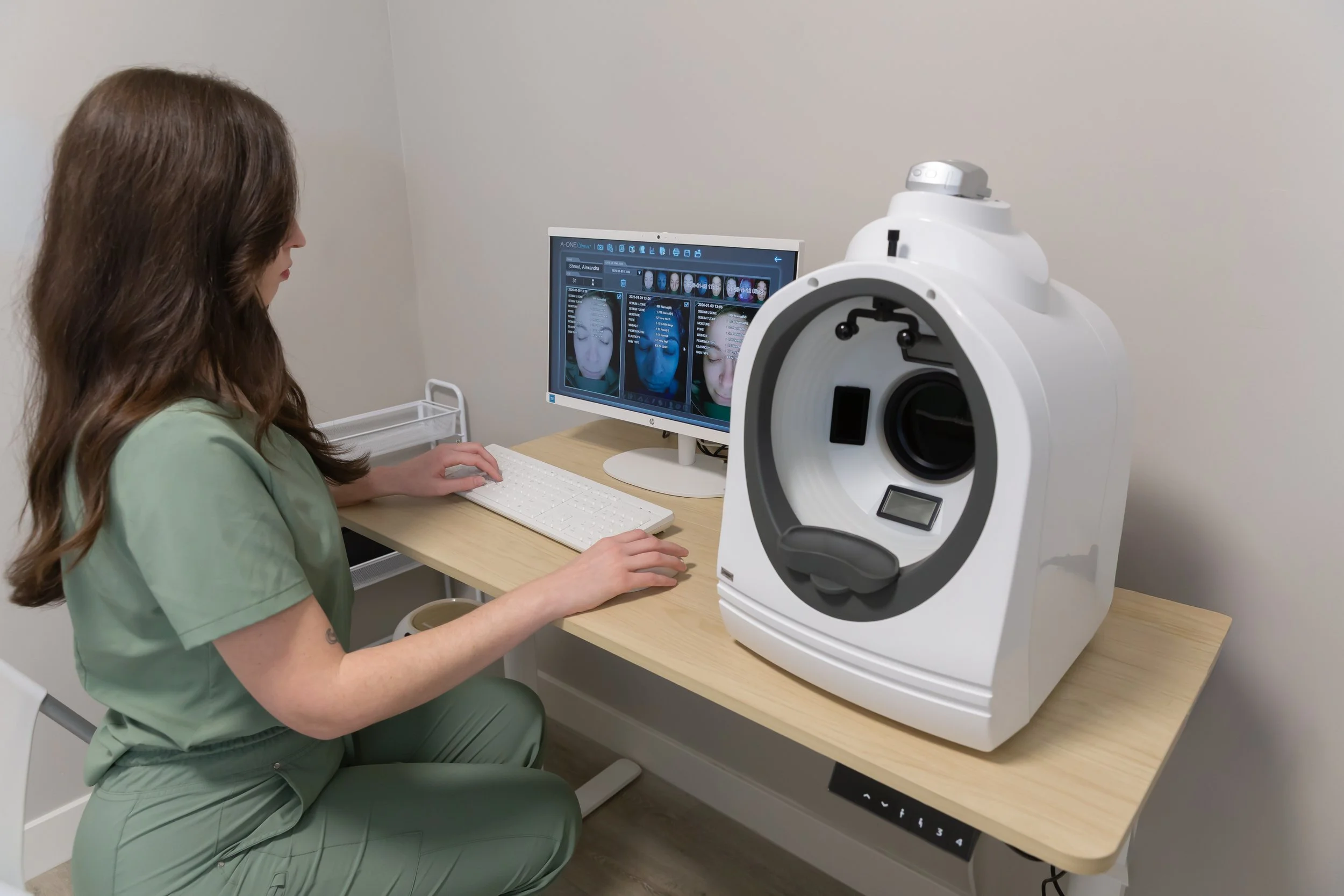 Let us take the guesswork out of your routine. Our AI-powered Skin Analyzer captures high-resolution images and analyzes key skin metrics in minutes—so we can recommend the right treatments and products for your skin.